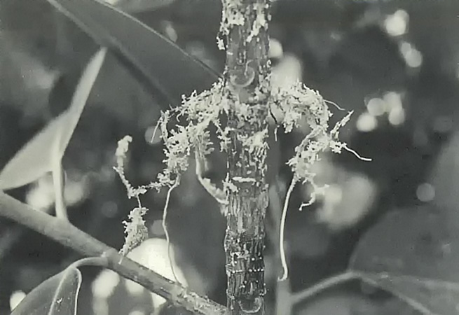 師管をイメージづける身近な例をあげてみよう。5月は取り木のシーズンである。ゴムノキ、ドラセナ、シャクナゲ、カルミア、フジなど、観葉植物や、花木などたくさんある。取り木は主として、挿し木ができにくいものに対して行う一種の繁殖方法である。この原理が、やはり葉でつくられた養分を蓄積させて適当な湿り気を与えることにより、切り口から根を出させることなのである。方法は環状剥皮と全く同じで、施術後に水を適当に含ませた水ゴケ(大人の握りこぶし大)を傷口に巻いておくだけである。葉からの発根ホルモンが集中して根の原基ができると、茎の途中に根がモジャモジャとでてくるというわけだ。仕掛けて1ヵ月後に、傷口にカルス(癒傷組織)ができれば成功で、やがて発根が始まる。秋には一個の新しい個体が誕生することになる。