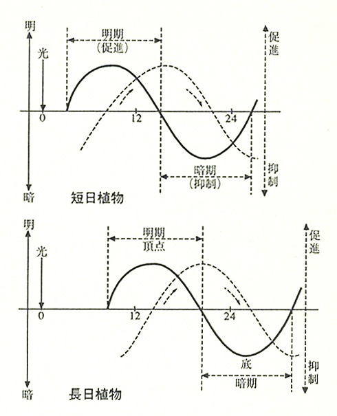短日植物にも変わった野草がある。キク科で史前帰化植物といわれているオナモミがそれ。夜が長いほど花がよく咲くのが通例だが、オナモミは違う。例外的に昼が15時間以下、夜が9時間以上なら花が咲いてしまう。