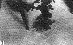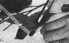 この道具を用いて標本を貼付けるのは至極簡単である。前記のテープをラミネート面を下にして台紙上に置き、鏝で軽くなでれば即座に熔着される(図F)。テープを必要な長さに前以って切っておく必要はない。鏝を平に当てたままテープを捻り気味に引張れば簡単に切ることができる(図G)。この点は従来の紙テープと違って大変便利である。テープが薄いので、切口がささくれていても全く気にならず、また葉や花の上にかかるテープも同じ理由であまり邪魔には感じられない。