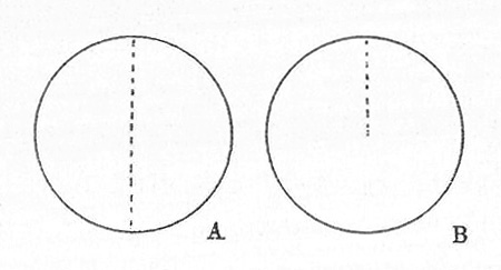 さてこう考えると、一方を縁石で仕切れば、自動的に残りも同じ縁石で仕切られることになる。これを図でやってみるとC′のようになる。この場合「残り」というのは「タダノカタバミ」であり、その中にもvar.もssp.も含まれ得る。だから縁石に囲まれたブロック塀や生垣ができてしまうのである。これは先の第2のルールに反する。ただしこのことは作図のしかたが議論に忠実でないから起こることである。種の中に変種でも亜種でも作れば、それに応じて「タダノ」に当たる変種や亜種が自動的にできるから、Cの図は正しくないのであって、A″のようになるべきである。このような図式を考えれば話が片づいたように見える。
