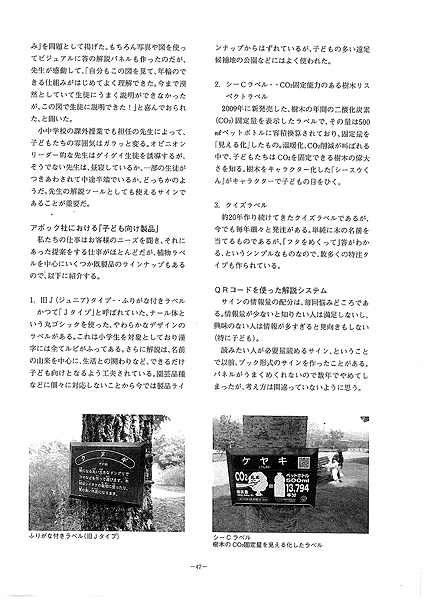 Among my 25-years experiences of a nature signature at various opportunities as well as a botanical garden. I pick up the items produced from the educational standpoint. And mention “the signature that the child watched”. The information service using “visualized label for CO2” and “QR cord”, which is carried on the passage of times. Is also introduced in the latter half.