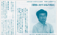 ABOC創立20周年記念講演 作家の立松和平さん『環境に対する私の視点』