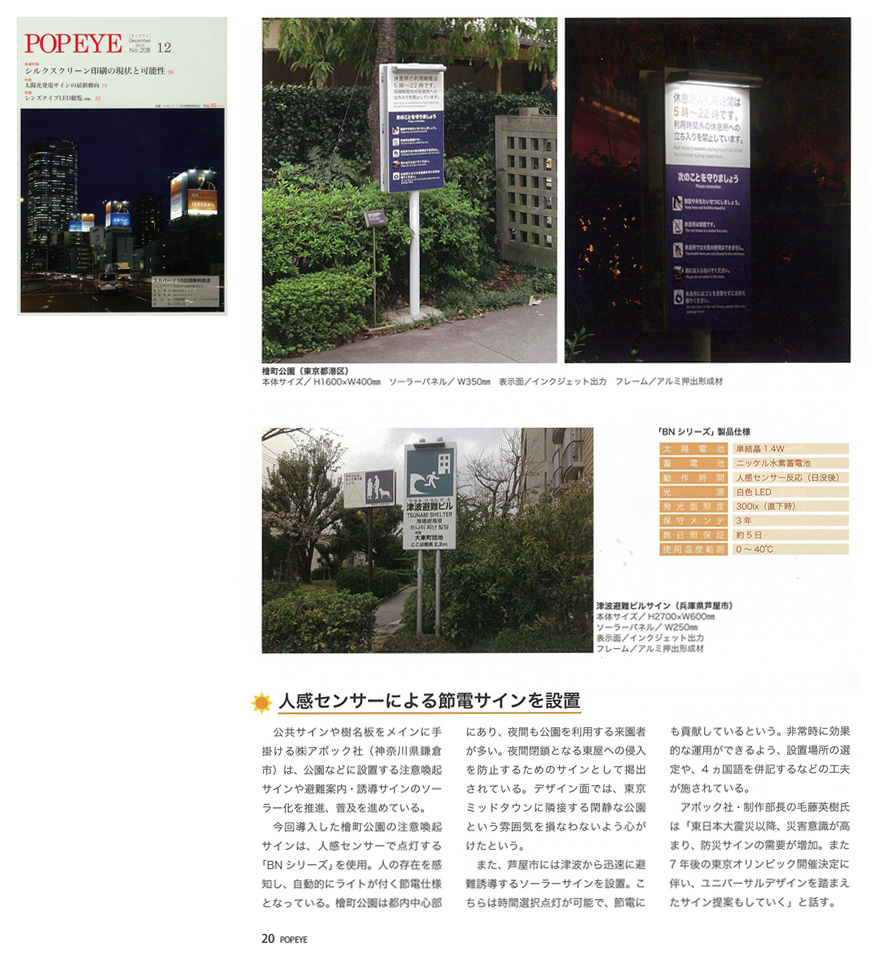 『POPEYE12月号』に「避難案内・誘導サイン BNシリーズ」が紹介されました。